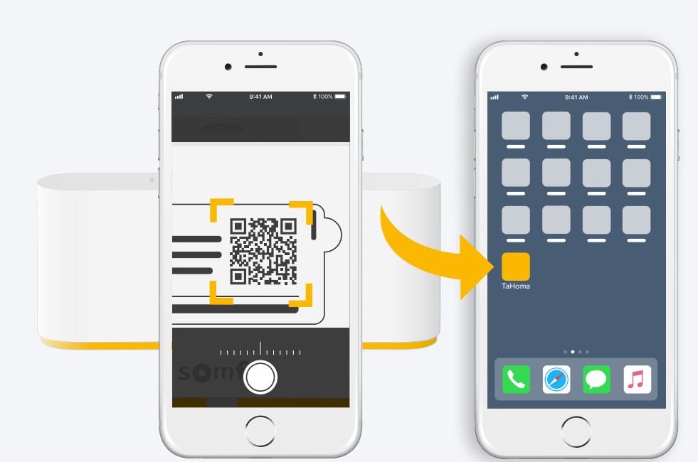 La box box TaHoma switch est une commande si intelligente qu’elle permet aussi de centraliser et de contrôler à distance le fonctionnement de votre logement. Pour cela, il suffit d’installer l’application TaHoma® by Somfy sur votre smartphone et toutes les commandes se passent par le WiFi. (application disponible sur l’App Store et sur le Play Store.