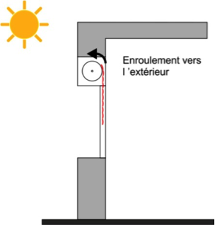 Si le volet s’enroule vers l’intérieur de la pièce, le coté bombé des lames sera visible de l’extérieur. C’est par exemple le cas pour un volet roulant de type traditionnel avec un coffrage existant à l’intérieur de la pièce. |